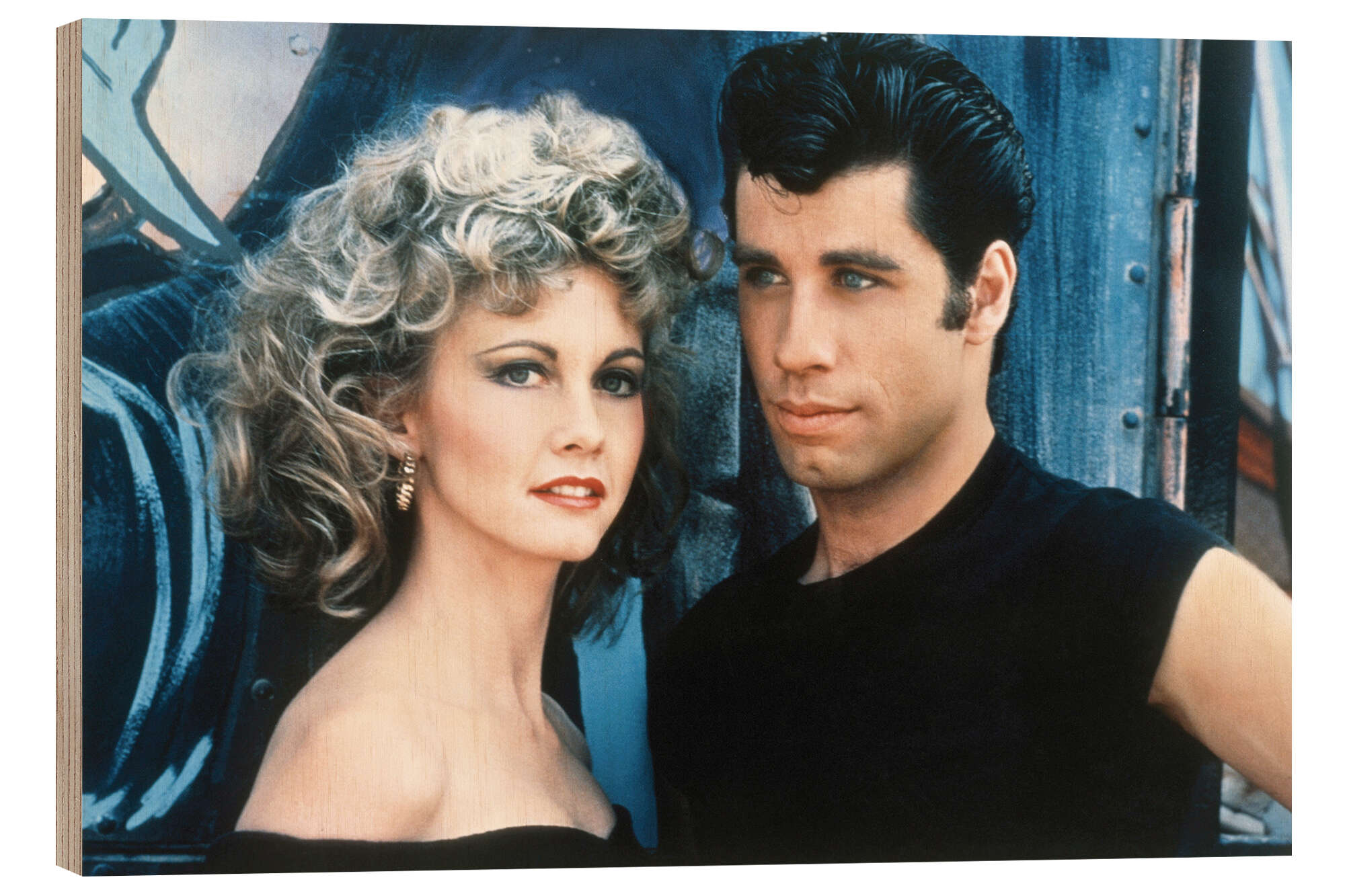 Posterlounge   Wandbilder   Fotografie   Nostalgie   Holzbild Olivia Newton-John und John Travolta, Grease 1978