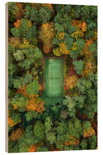 Posterlounge   Wandbilder   Fotografie   Martin Podt   Holzbild Tennisplatz mitten im Wald im Herbst