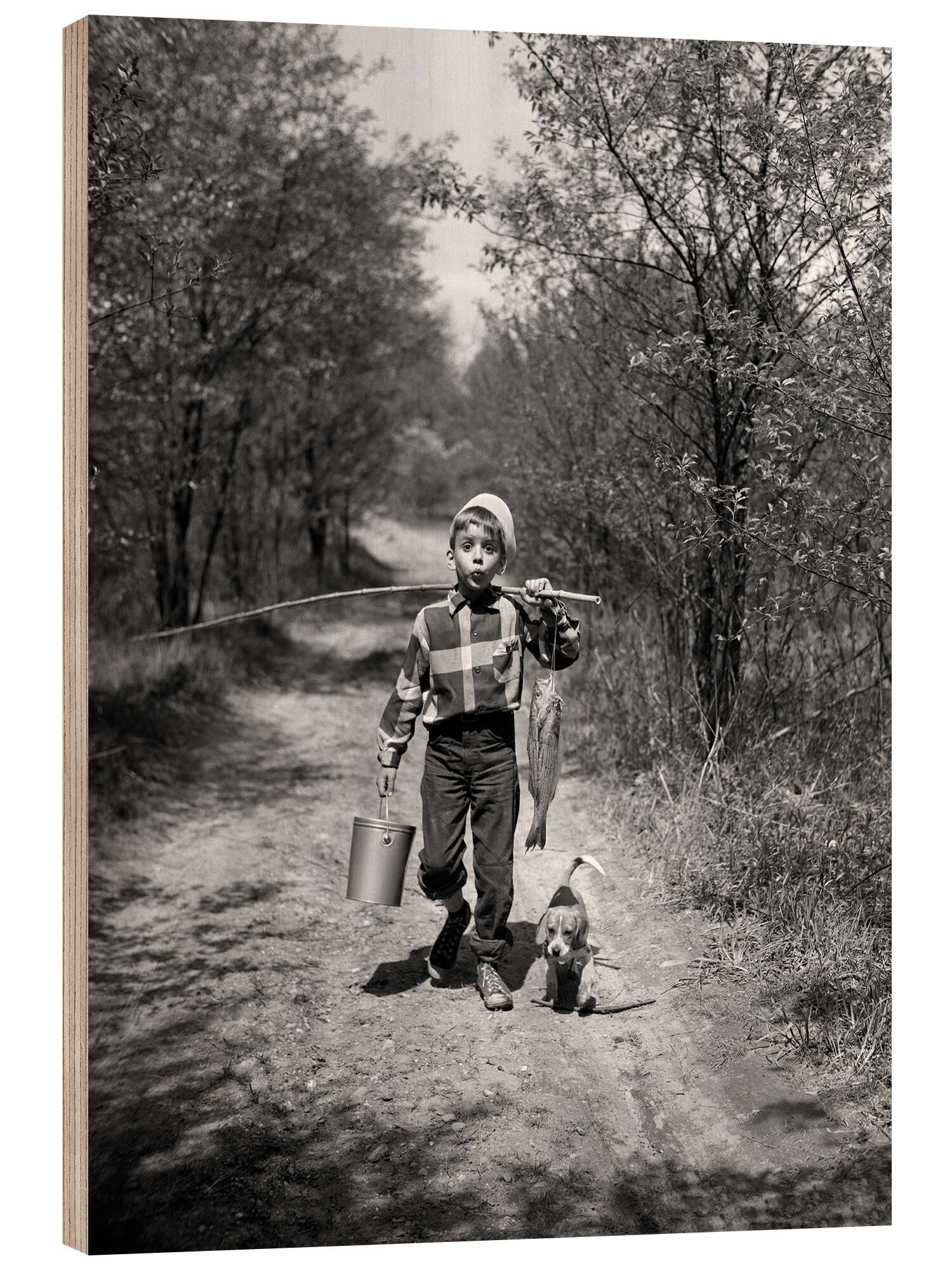 Posterlounge   Wandbilder   Schwarz-Weiß   Holzbild Angeln mit meinem Beagle