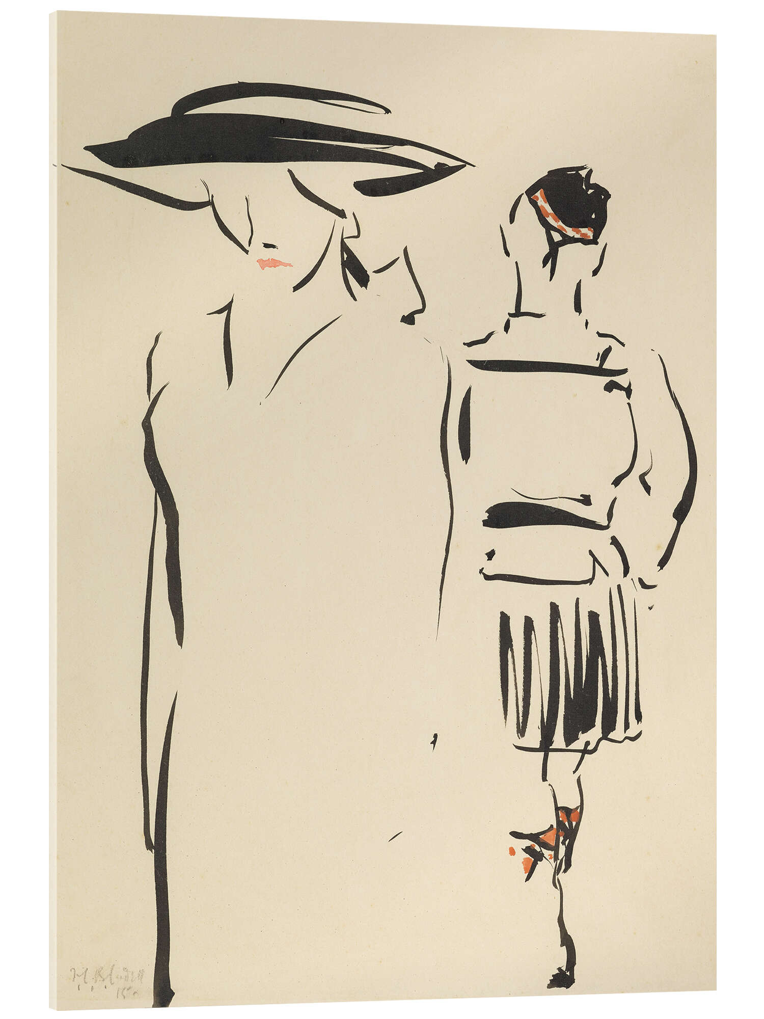 Expressionistische Wandbilder über einer Kommode