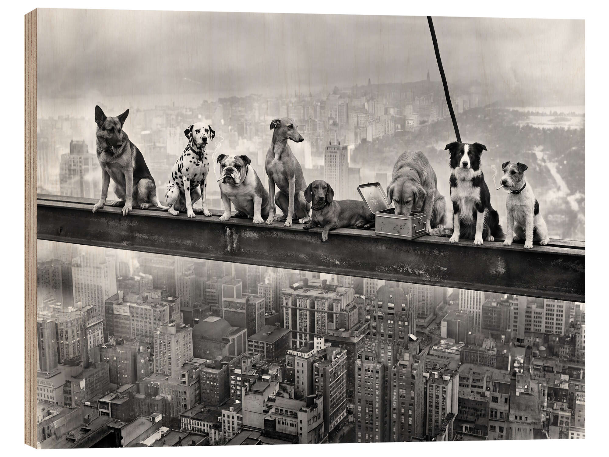 Posterlounge   Wandbilder   Lustiges   Andreas Magnusson   Holzbild Lunch Atop a Skyscraper - Dog Edition