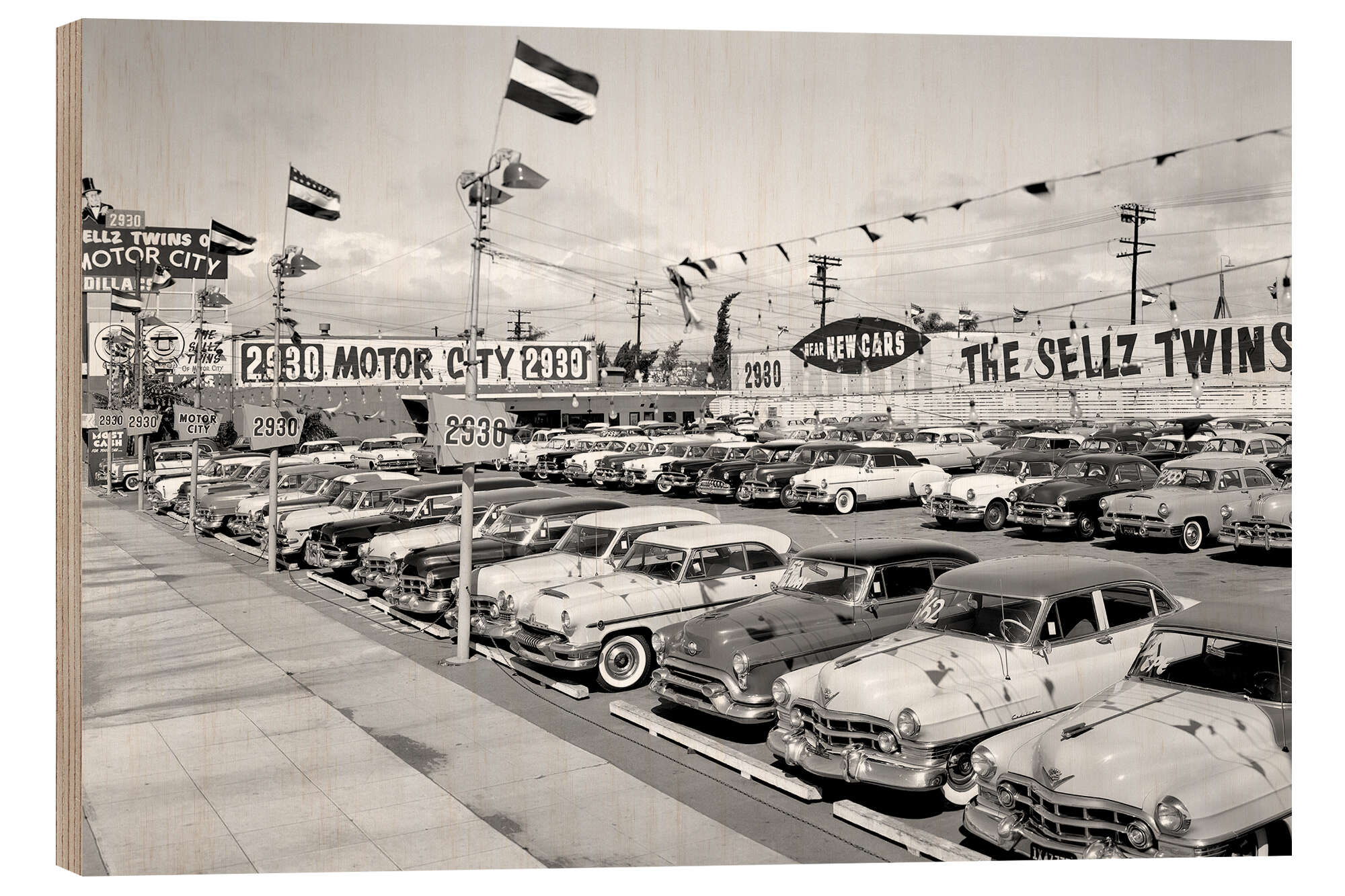 Posterlounge   Wandbilder   Fotografie   Nostalgie   Holzbild Autosalon 1950er-1960er Jahre