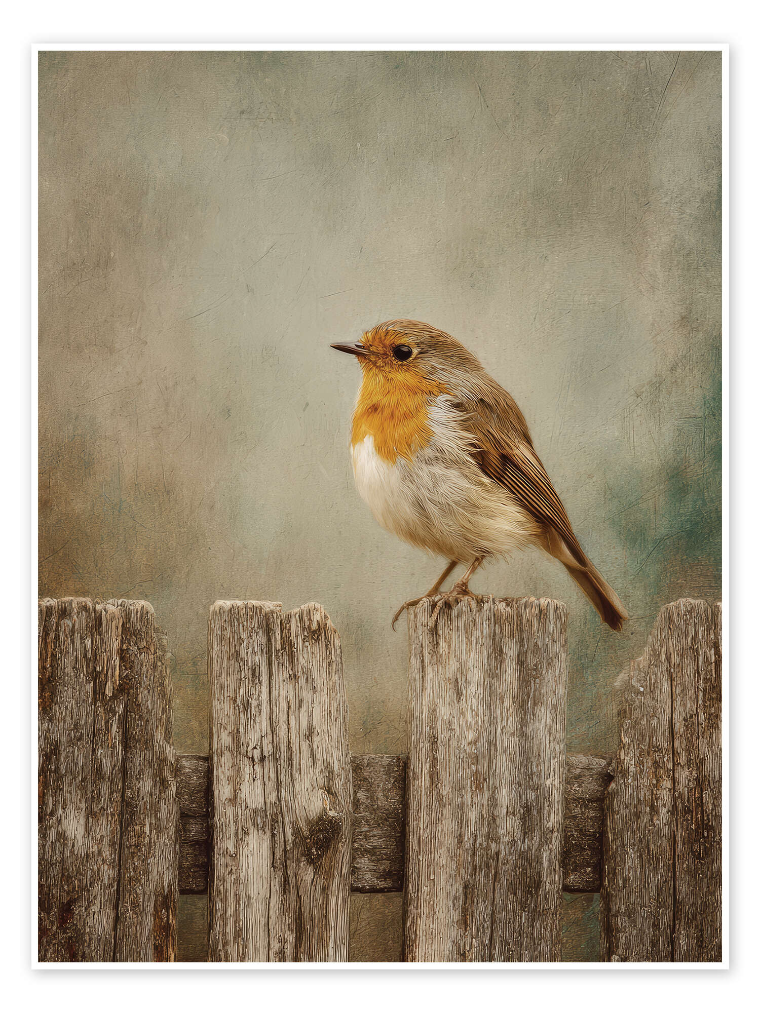 Posterlounge   Wandbilder   Tiere   Vögel   TAlex   Poster Rotkehlchen auf Holzzaun