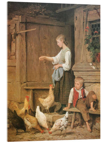 Posterlounge   Wandbilder   Menschen   Frauen   Albert Anker   Acrylglasbild Mädchen füttert Hühner, 1865